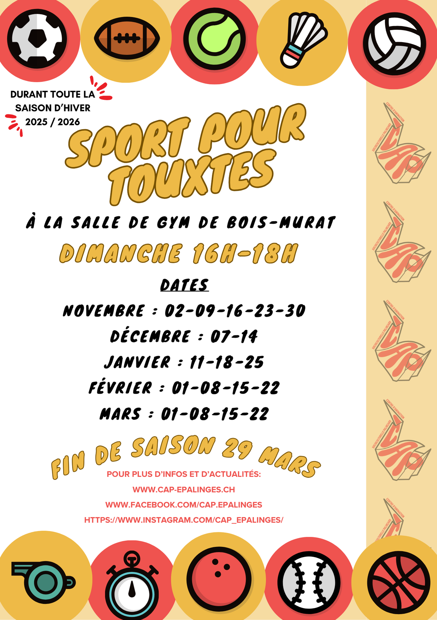 Les dates de la saison 2025 – 2026 :