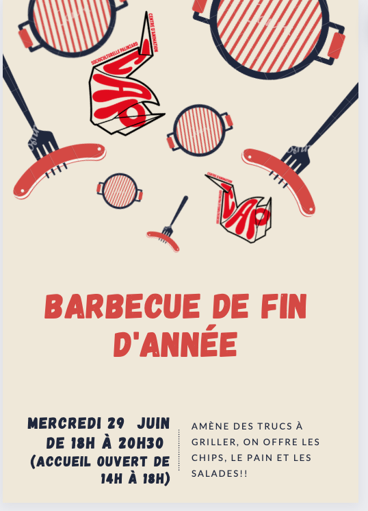 Pour terminer ce semestre en beauté, on vous invite au traditionnel barbecue de fin d’année !
