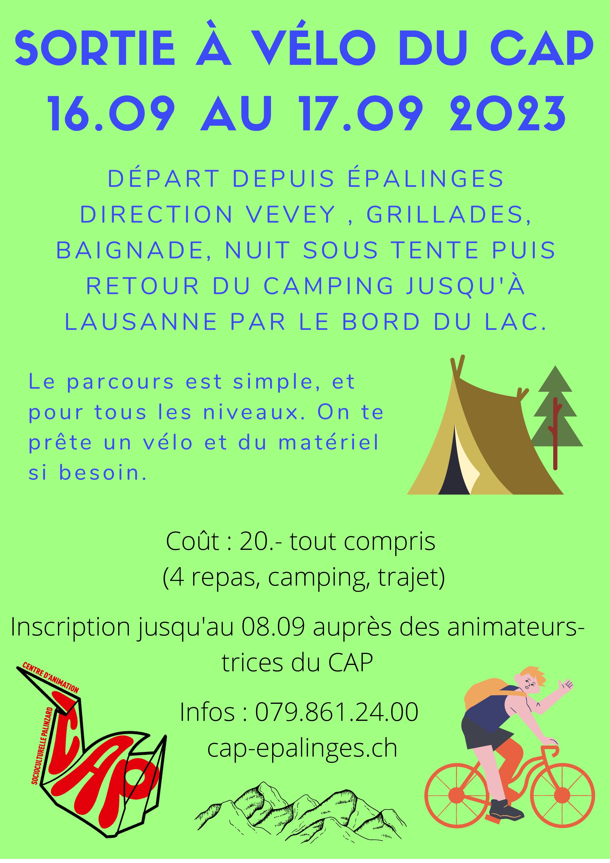 Délai d’inscription : Vendredi 8 septembre, informations auprès des animateurs.trices