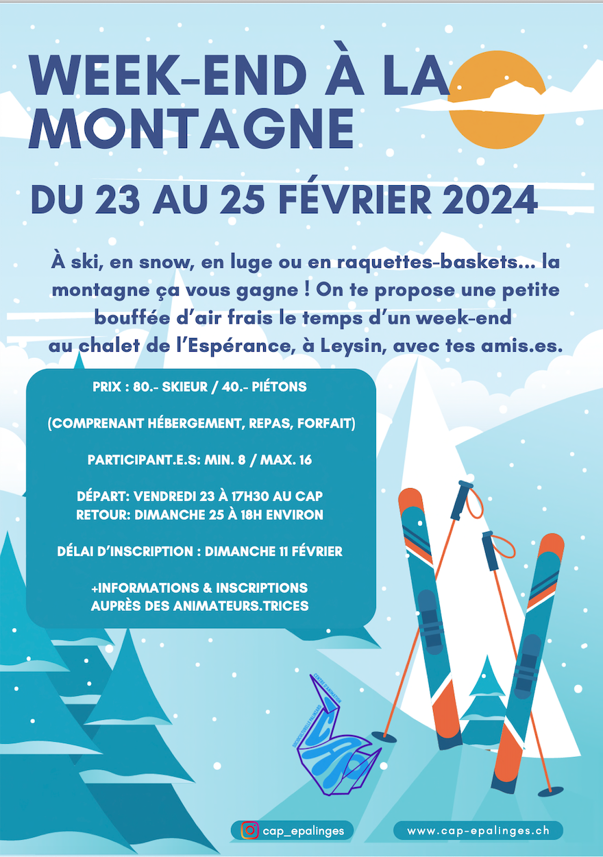 De la neige, de la glisse ou des ballades ! Des activités, des jeux, du temps avec tes ami.e.s et des surprises! Tout ça dans un cadre idyllique à la montagne !