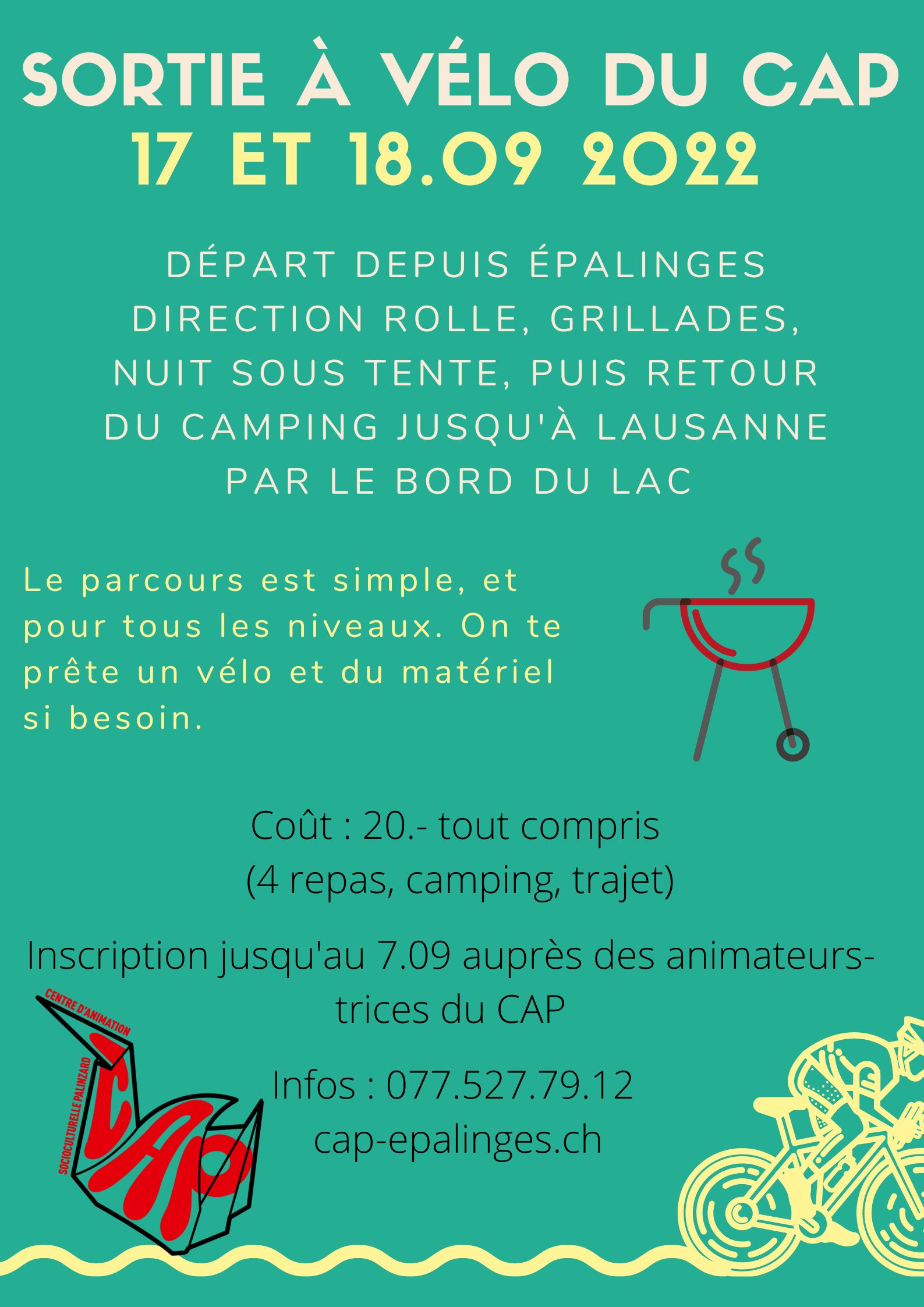 Inscription jusqu’au 7.09 auprès des animateurs.trices du CAP, ou télécharge sur le site une « inscription à une sortie », à rendre durant les heures d’ouverture de l’accueil libre du CAP. Maximum de 9 participant.e.s .
